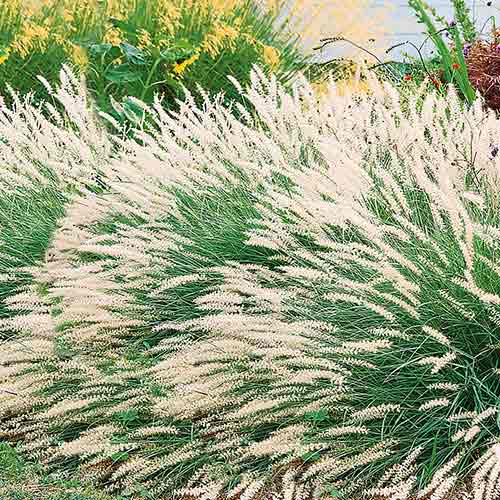 Пеннисетум восточный — один из самых красивых сортов злаков. Необычный облик дает возможность создать чудесные композиции в садах и нададчх. Куст напоминает фонтан с яркими пушистыми колосками. Осенью только добавляется очарования. На фоне ярких желтых листьев остаются колоски неизменного цвета. Прекрасно сочетается с крупными цветами и декоративными кустарниками.