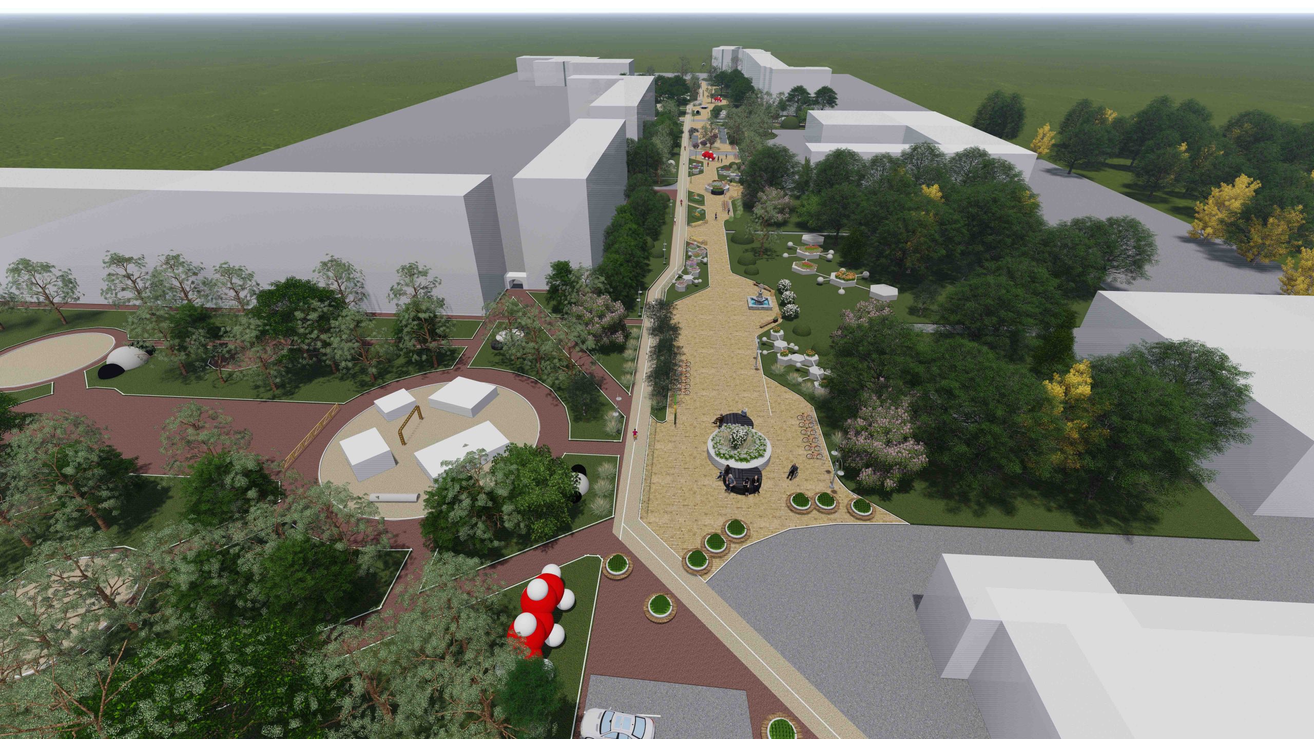 Проект благоустройства и реновации пешеходной зоны научно-познавательной направленности с детской площадкой и зоной выгула собак.