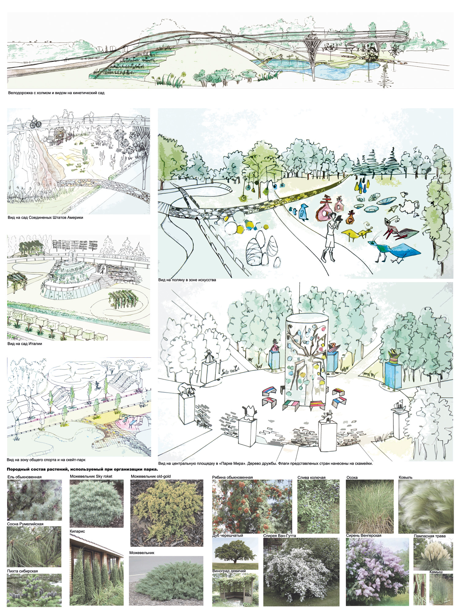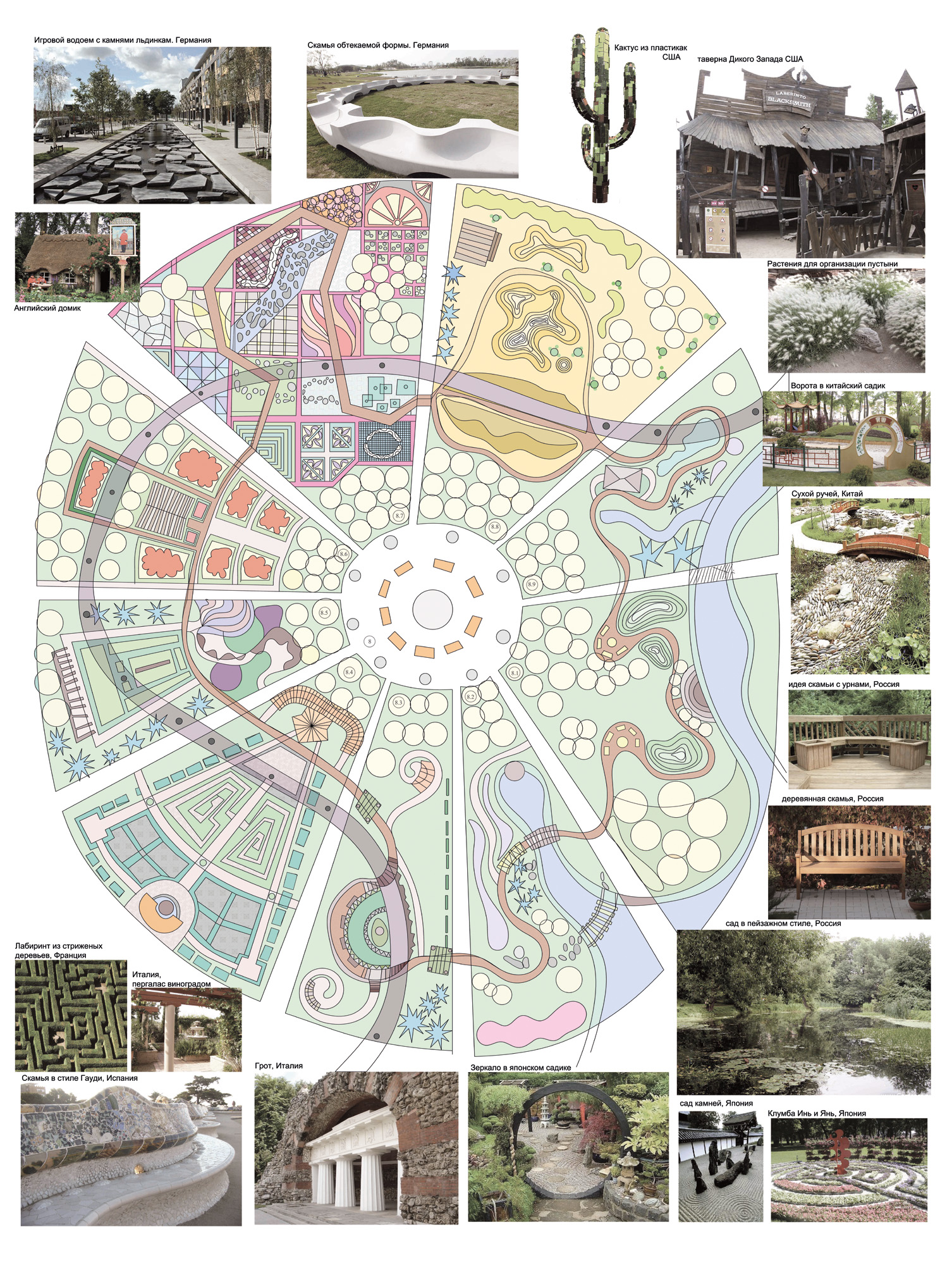 Идея проекта в том, чтобы соединить разные по функционалу и стилю пространства: детские зоны, водоемы и сады разных стран.